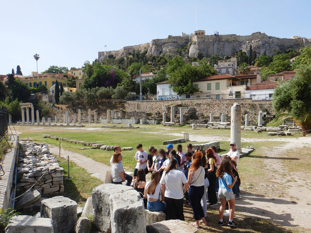 Η δράση ξεκίνησε με περιήγηση και ξενάγηση στον αρχαιολογικό χώρο της Ρωμαϊκής Αγοράς καθώς και γνωριμία με την ιστορία και τη χρήση του Ωρολογίου. Ακολούθησαν, θεατρικό παιχνίδι, κυνήγι θησαυρού καθώς και υπαίθρια εργαστήρια συντήρησης. Σε αυτό το πλαίσιο, οι μαθητές εξοικειώθηκαν με τεχνικές φωτογραφικής τεκμηρίωσης, σχεδιαστικής αποτύπωσης, καθαρισμού και ανάταξης αρχαιολογικών ευρημάτων.